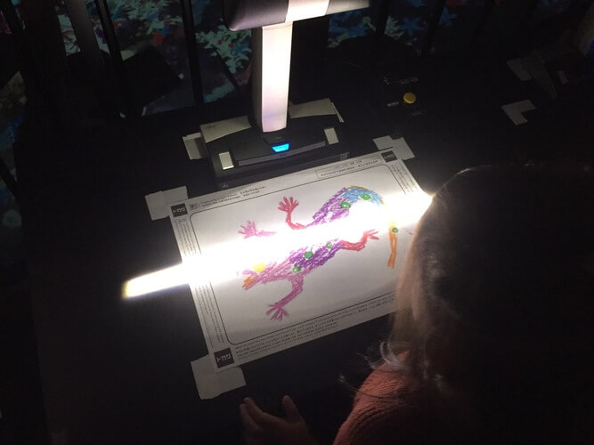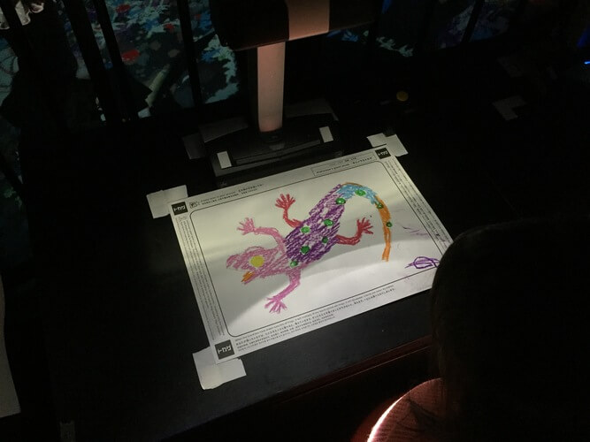 このエリアの出口付近には自分の書いた絵が実際に動き回る場所があります。